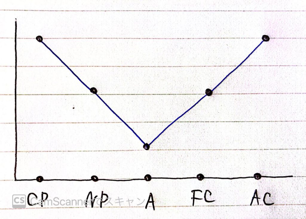 右下がり型の状態にある方におすすめの方法は、ACを上げることです。そうすることによって、他者の意見を聞き、関係性の構築にもつながると思われます。