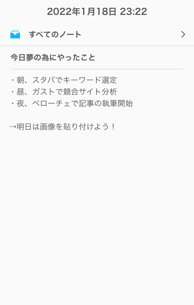 (例。実際は本物のノートに手書きで書くのがおすすめです!)