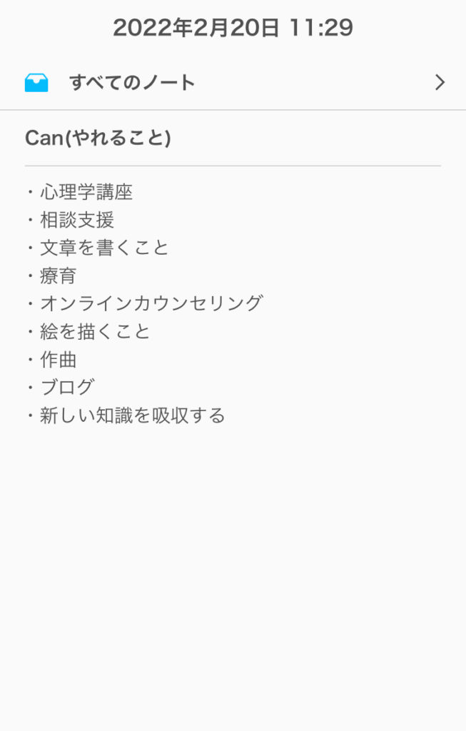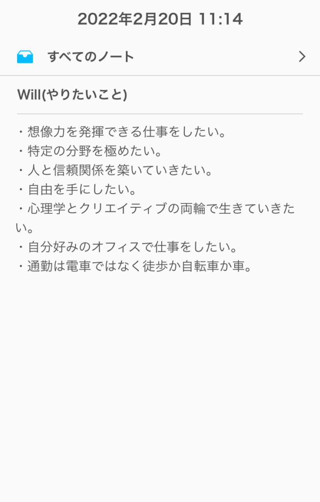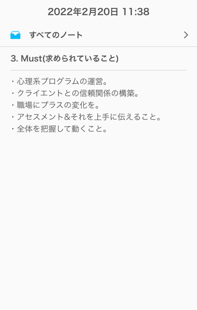 僕はこんな感じで書いてみました!ノートに手書きでもいいし、スマホなどに打ち込んでもokです!ただ、必ず記入することで視覚化しましょうね♪