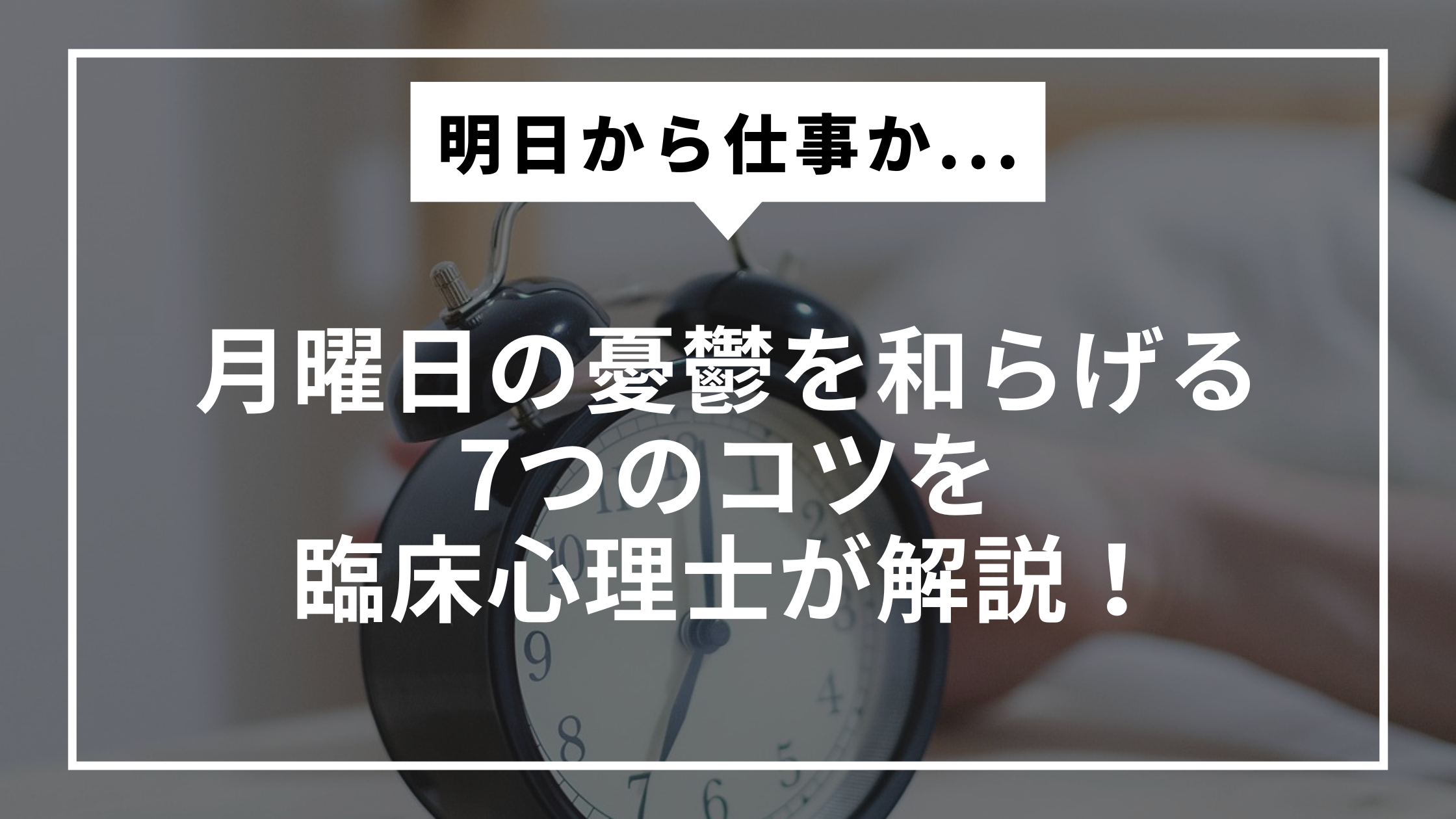 • 【明日から仕事か…】月曜日の憂鬱を和らげる7つのコツを臨床心理士が解説!